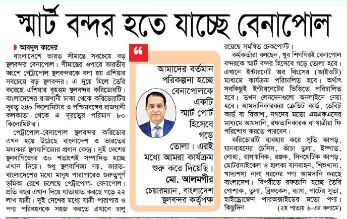 | ৫ | ১৪ মে, ২০২৩ তারিখে “দৈনিক কল্যান” পত্রিকায় " স্মার্ট বন্দর হতে যাচ্ছে বেনাপোল " শিরোনামে খবর প্রকাশিত। | দেখুন |
